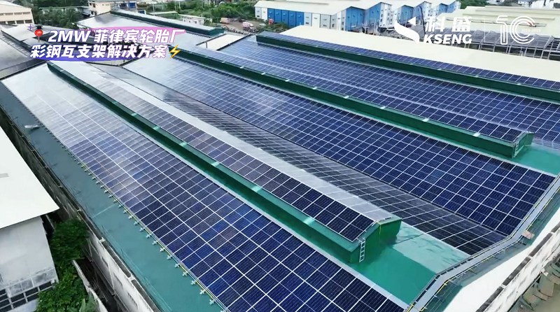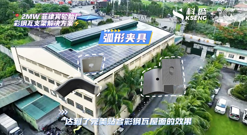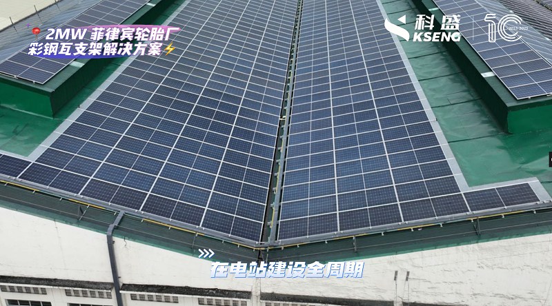 科盛彩鋼瓦屋面支架解決方案,2兆瓦菲律賓輪胎廠案例解析。項目由泉州鋮曄新能源科技有限公司總包,目前已經完工并網,正在持續為當地輸送綠色電力。